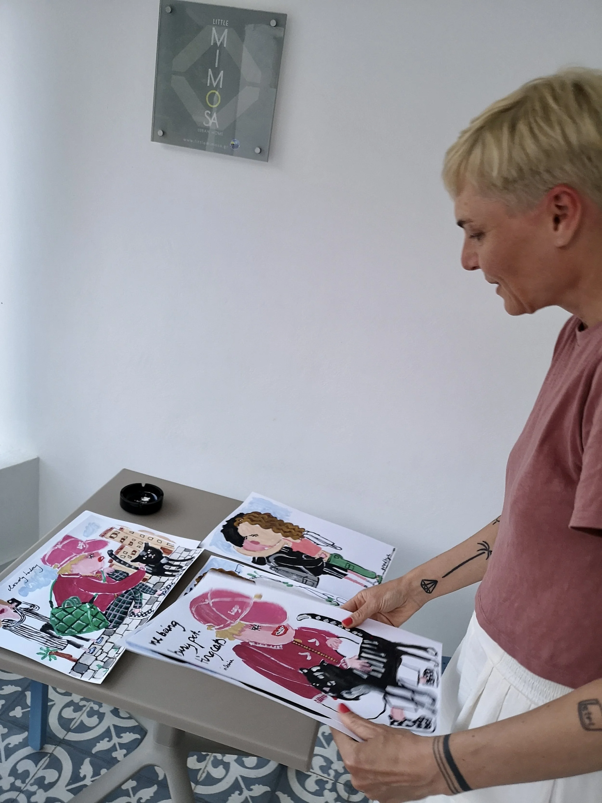 While staying in Chania we managed to take Katharina Arndt to some of our favourite spots in Chania. During the first week the weather was a bit off so we spent time in the Old Town and showed her some of our favourite graffitis and alleys; we had brunch on the Venetian Harbour; had some drinks in some of our favourite local bars and meals at some of our favourite restaurants. We managed to visit two beached the first week, Elafonisi (aka the pink sand beach) and Stavros beach where she drew inspiration to created some fantastic works; in fact one of the large scale paintings that will be shown in our space during her solo show will be depicting our road trip through all the mountains and narrow tunnels to Elafonisi (goats and all).